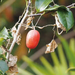 ハチなどのこん虫が蜜を得るために花に入りこみ、その時にこん虫に花粉が付き、運んでもらうようになっています。