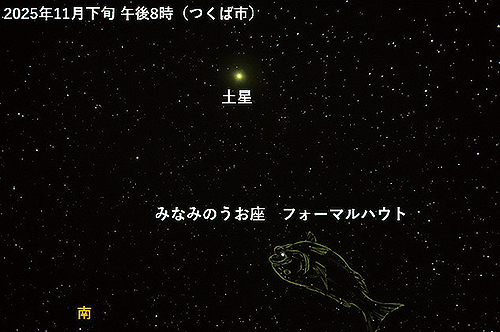 夜8時ごろ、「秋の一つ星」フォーマルハウトの上に見える土星を、ぜひ望遠鏡などで観察してみましょう!