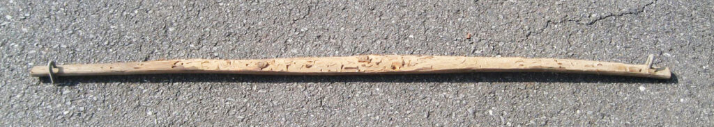 荷物を運ぶ時に使う木の棒です。写真のように、棒の両はしに荷物をぶら下げて、かたにかついで運びました。