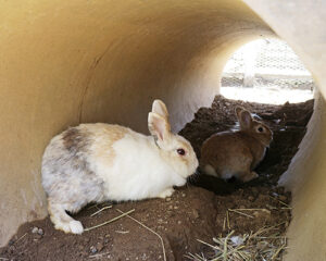 家庭でも飼育ができるウサギをカイウサギといい、アナウサギを原種としています。アナウサギは、巣穴をほって生活し、危険を感じると巣穴や土管のような暗い場所へ逃げこみます。 土管をのぞいてみると、耳を立て鼻をピクピクと小刻みに […]